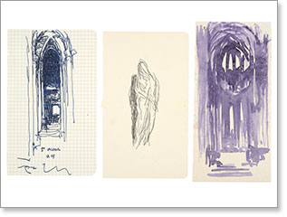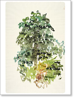"Cette collaboration exceptionnelle trouve sa source dans ce que l'artiste considère comme la colonne vertébrale de son œuvre : ses dessins et ses aquarelles, réalisés "sur le motif" : paysages, arbres, natures mortes, architectures, baigneurs..."